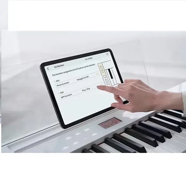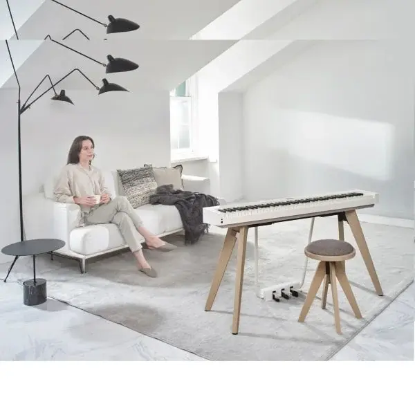 The New Apex of Design and Sound This model combines the integrated aesthetics with built-in pedals and stand that can be appreciated from any angle, with Casio’s innovative sound technologies and authentic touch of a grand piano. Feel the quality and beauty of the PX-S7000 and discover a new level of harmony it brings to your life. Privia Official Brand Site Fully integrated design with clean, simple lines that looks great from any angle. Available in three color variations: Harmonious Mustard, black and white. Designed to fit seamlessly into any interior style. New Spatial Sound System technology uses four individually driven full-range speakers housed in a rigid structure made from a wood/resin composite material. Piano Position function optimizes the acoustics depending on where the digital piano is located (Standard, Wall, Center, Table). Stunningly authentic acoustic grand piano tones courtesy of Casio’s unique Multi-Dimensional Morphing AiR Sound Source. Includes a group of carefully crafted acoustic piano and electric piano tones as heard on specific well-known hit songs. Smart Hybrid Hammer Action Keyboard combines an advanced physical keyboard mechanism with digital control technology for highly expressive playability. High-quality tactile pedals close in feel to an acoustic grand piano. Standard phone MIC IN jack (TS phone) with dedicated MIC VOLUME knob to connect a microphone that can be used with various vocal-enhancing Microphone Effects. Connect the included Wireless MIDI & Audio Adaptor (WU-BT10) and listen to music using Bluetooth® Audio from your smartphone or tablet through the PX-S7000 speaker system. Top panel LED illumination display complements the style of music playing. Height adjustable piano stool created in collaboration with Seki Furniture’s CRASH GATE brand. Constructed of high-grade natural wood, the stool is both functional and a beautifully designed piece of furniture (sold separately). CASIO MUSIC SPACE app for smartphone and tablet to make learning and playing music even more fun. DESIGN Clean lines and design simplicity that look great from any angle and echo the traditional aesthetics and quality of an acoustic piano, including the integrated stand and pedals. Available in three color variations: Harmonious Mustard, black and white. Designed to fit seamlessly into any interior style. * HM variation is polished to a high-quality piano luster. Stand finished in wood-grain with lines that match the piano itself. Color of the spaker fabric that matches the body color. Transparent acrylic music stand included. Pedal unit and metal frame all match the body color of the piano, as does the included piano cover. Flat top panel with LED touch ring, touch buttons and backlit LCD display. Space-saving form with a front-to-back depth of just 242 mm. SOUND & PLAYABILITY Sound Source Multi-Dimensional Morphing AiR Sound Source produces a wide range of exceptionally detailed and playable tones, including grand piano tones that include the rich resonances of the acoustic instrument. The overtones generated by the piano strings for each of the 88 keys-and the resulting complex body resonances-are faithfully produced to create a beautifully rich and vivid piano tone. The piano tone subtly changes over time and with every nuance of the player’s style, from the softest of touches to powerful, spirited playing. Open String Resonance and Aliquot (additional strings in the upper octaves that are not struck by the hammer, but sympathetically vibrate for a richer tone) Resonance modeling. Sound System Casio’s new Spatial Sound System technology uses four independently driven full-range speakers to produce a sound capable of filling your performance space. The speaker support structure is constructed from a rigid wood/resin composite material. The outer speakers are equipped with Side Enhancing Diffusers that help produce a wider sound despite the compact size of the piano. Surround function creates a natural, expansive aural experience by adjusting the individual output of the four speakers, each tuned for a particular element of sound in space (selectable from three types). The Hall Simulator/Reverb function recreates the acoustic properties of concert halls and other performance spaces producing a realistic sense of presence. Piano Position function adjusts the sound elements from each speaker according to the location of the digital piano (mounted on the stand, near a wall, in the center of the room, on a table). Tones 400 built-in tones including acoustic pianos, electric pianos, organs, strings, and more. Includes a group of carefully crafted acoustic piano and electric piano tones as heard on specific well-known hit songs. Keyboard Smart Hybrid Hammer Action Keyboard allows for highly expressive playing from soft to forceful touch through a combination of advanced physical keyboard mechanism and digital control technology. Like an acoustic grand piano, the key mechanism uses the weight of the hammers so that the keys feel light when played softly but still responsive when played forcefully. White keys are made from a high-quality spruce wood/resin composite material for a natural feel and premium finish. White keys are finished to recreate the natural grain of ivory, while the black keys feature a new matte finish that closely resembles ebony wood in both look and feel. 88-Key Digital Scaling technology means that volume is individually controlled for each key in response to how hard it is played, with the touch weight varying along the length of the keyboard, like a grand piano. Ten-step Hammer Response setting allows you to adjust the timing of the sound relative to how the key is struck and which register is being played, like an acoustic piano. Three levels of Key Off Response control how quickly the sound decays when a key is released. A slightly more legato or staccato feel can be selected to suit the song. The Key Off Simulator controls how quickly the