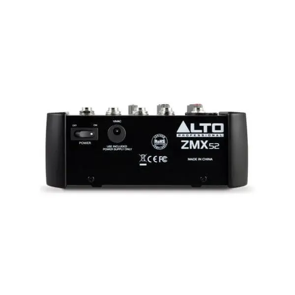 The Alto ZMX-52 is a compact 5-channel mixer, featuring a high-headroom design, ultra-low-noise mic preamp, and flexible input/output options, delivering clear sound, dynamic range, and reliable performance for musicians and audio professionals