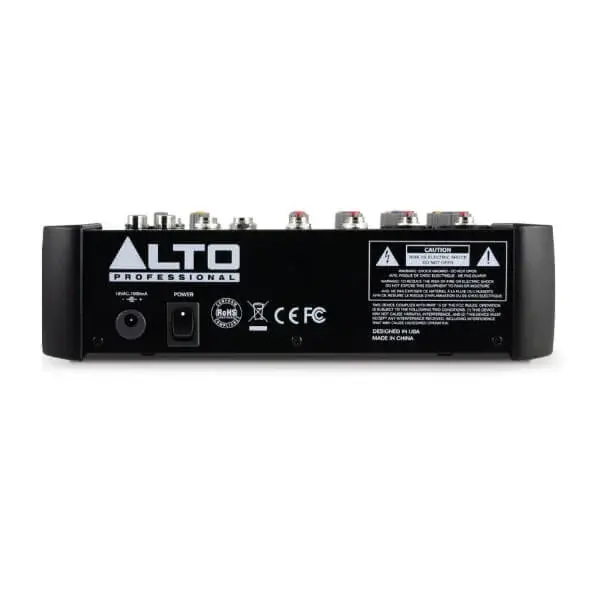The Alto ZMX862 is a 6-channel, 2-bus compact mixer featuring two XLR mic inputs with phantom power, 3-band EQ, and dual AUX sends per channel—ideal for live sound, podcasting, and small studio setups.