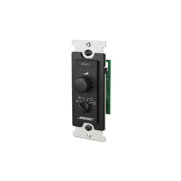 The Bose ControlCenter CC‑3 EU in Black is a wall‑mount control panel for Bose DSP systems. Provides volume and source selection with rotary knob. Designed for EU wall box standards. Main Features: - Model: CC‑3 EU - Color: Black - Functions: Volume + source select - Compatibility: Bose DSP systems - Dimensions: ~86 × 86 mm (EU standard) - Weight: ~0.2 kg