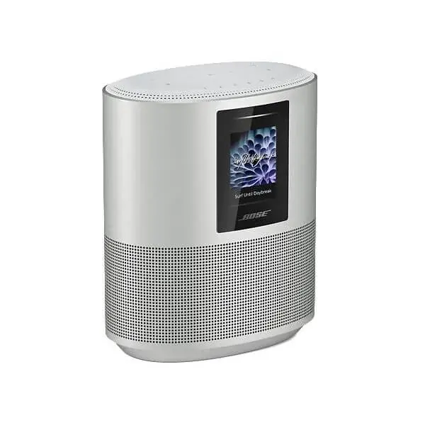 The Bose Home Speaker 500 delivers immersive stereo sound from a single speaker. With built-in Alexa and Google Assistant, Wi-Fi, Bluetooth, and Apple AirPlay 2, it offers seamless voice control and streaming. Its sleek Luxe Silver design and color LCD display make it a stylish addition to any room