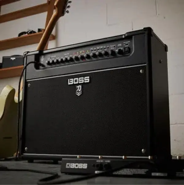 Designed with extra detail, the Katana-Artist MkII elevates the Katana lineup with next-generation features and flexibility. The exclusive front-panel controls provide the sound-shaping power of a massive pedalboard right inside the amp, with five amp characters, providing 10 different tone options to choose from, and five simultaneous effects categories, including a three-way Contour switch, Global EQ with three customizable curves, and a Solo boost with adjustable level. Developed by BOSS to deliver the wide dynamic response, smooth midrange, and rich harmonic overtones of the benchmark 25-watt British stack speaker from the 1960s while boosting power capacity to 100 watts, the Katana-Artist MkII's 12-inch Waza speaker puts the ultimate vintage rock sound under your fingers, while the cabinet's wide baffle and semi-closed back provide focused, punchy tones with rich low end and big midrange fullness. Use the two banks of four onboard Tone Setting memories to store your favorite amp character and effects setups for instant recall. Also, connect two amps using Dual Link to configure each amp with independent settings and operate them from a single GA-FC foot controller (sold separately), or via Stereo Expand to use one amp as the master and the other as the slave, with onboard stereo-compatible effects like chorus, delay, and reverb distributed across both amps for a wide, immersive sound field.