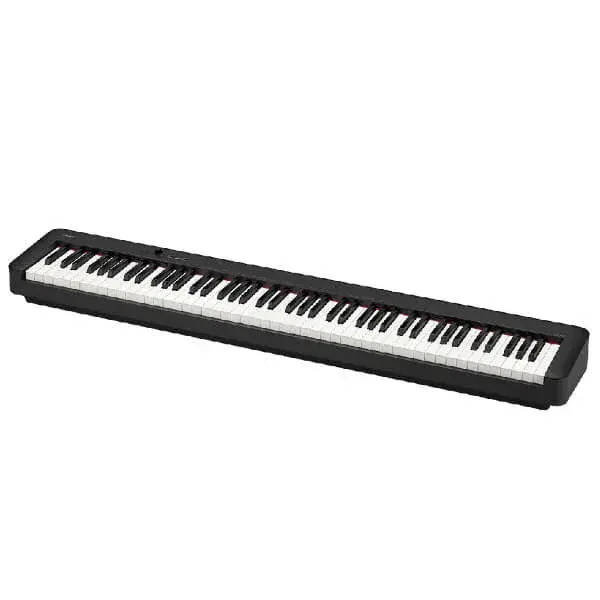 Features Slim body just 232 mm in depth Casio has applied its highly compact construction technologies to achieve a size that is even smaller than previous CDP series. This compact piano can be played anywhere, in your own style. Natural tone changes for dynamic piano sound Comes with 10 built-in high-quality sounds, including grand piano. You can express subtle differences in tone by adjusting the force with which you strike the keys. Scaled hammer action keyboard II For the new CDP-S series, Casio has significantly reduced the size of the action mechanism that simulates the weight of the hammers in a grand piano. This allows for a keyboard with a responsive touch in an amazingly slim body. Supports battery operation In addition to household electrical power, the CDP-S supports battery operation, allowing players to freely enjoy performing anywhere. Chordana Play for Piano app provides users a smart and easy-to-use operation Piano Remote Controller Use your favorite device to adjust your CDP-S series settings, select Tones, and more. PDF Score Viewer Display music scores saved as PDF files, with pedal-activated page turning. Audio Player Play back audio on your device with musical tools such as key shift and tempo change, looping, and melody cancel. MIDI Player Play back your favorite MIDI songs. Connection method *Connection method differs according to smart device model. Specifications Keyboard Scaled Hammer Action Keyboard Ⅱ Number of Keys 88 Touch Response 3 sensitivity levels, off Maximum Polyphony 64 Number of Tones 10 Demonstration Songs 2 Pedal Included: SP-3 x 1 (terminal x 2) Speaker [12cm x 6cm (Oval)] x2, 2-Speakers Amplifiers 8 W + 8 W Power Supply 2-way [Batteries] AA-size alkaline batteries x 6 Approximatery 13 hours [AC Adaptor] AD-A12150LW (DC 12V) Power Consumption 8W Dimensions 1,322 x 232 x 99 mm (w/o music stand) Weight 10.5 kg Color Black