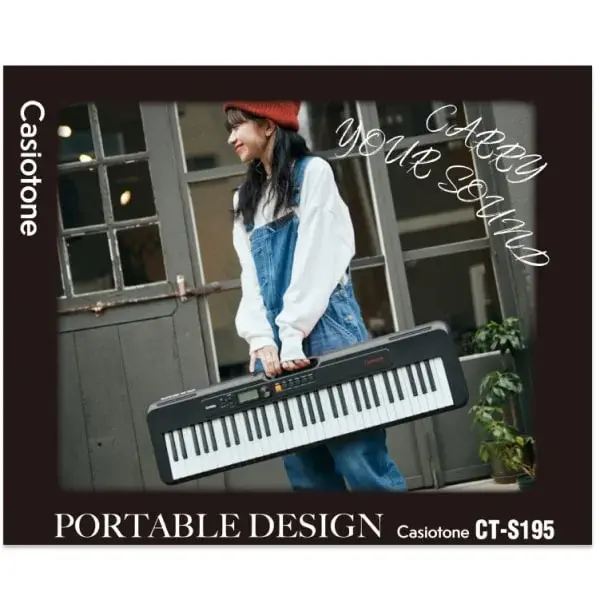 The new Casiotone series is designed to be the world’s most portable 61-note keyboard. New features such as an integrated carry handle, piano-shaped keys, longer battery life, smooth corners and a slim profile make this the perfect introduction to music.