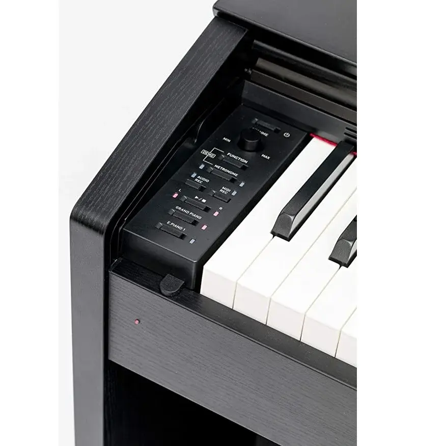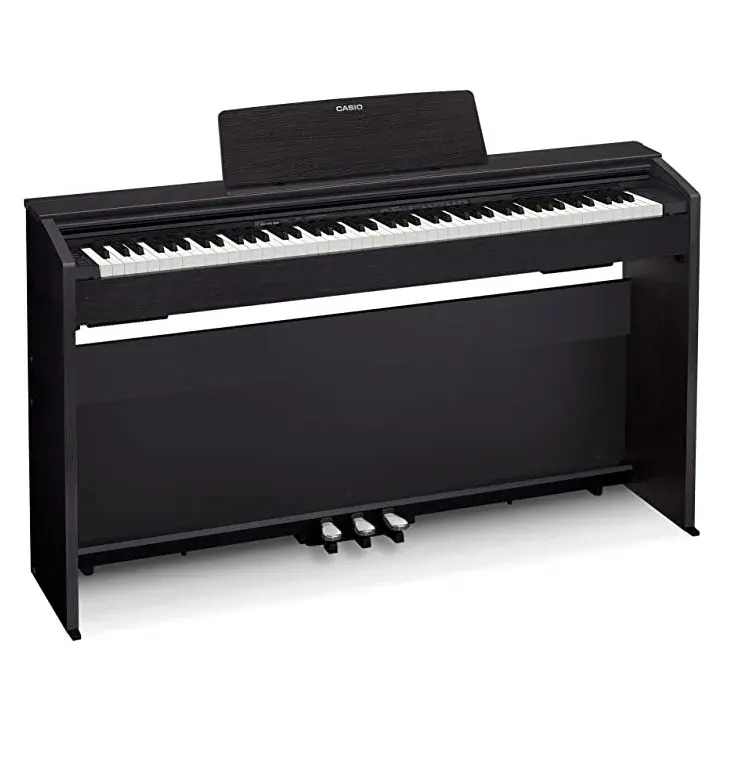 The Simulated ebony and ivory keys offers the luxurious feel and texture as well as the smooth touch of a grand piano keyboard. The minutely detailed crimp surface finish inhibits finger slippage due to sweat and gives the sensation of a perfect fingertip fit, even when playing for extended periods.