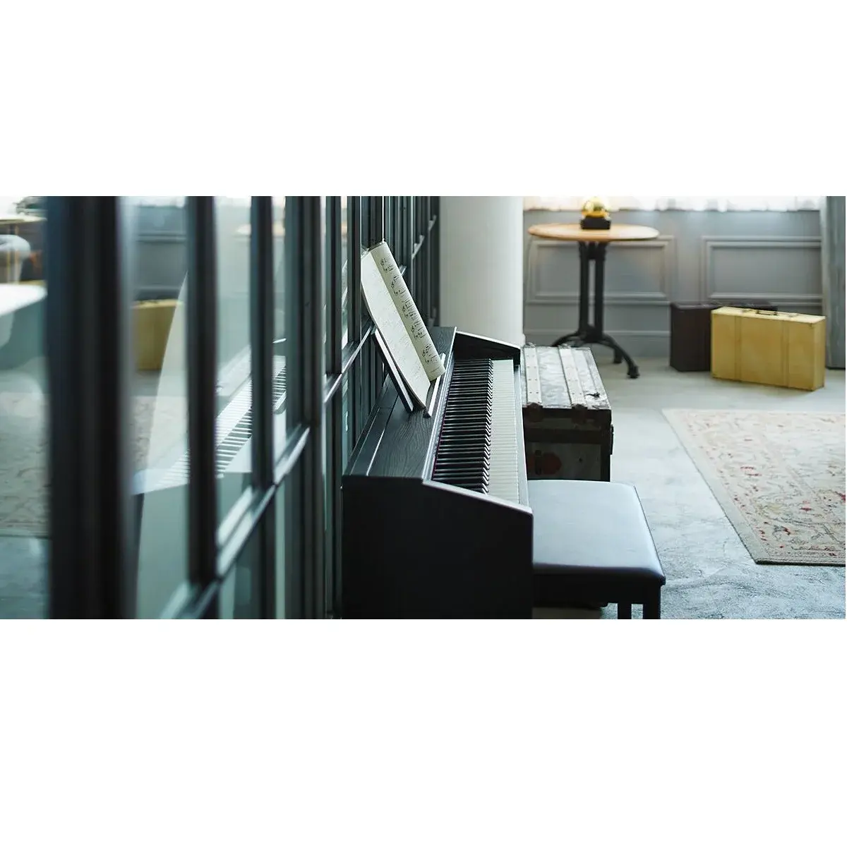 The sound volume and quality change when the lid on a grand piano is raised or lowered. The Lid Simulator reproduces the same acoustic effects for enhanced enjoyment with a digital piano. The acoustic effects of opening and closing the lid are simulated in fine detail. The piano sound you are seeking as you play is always available for your enjoyment by selecting the degree to which the lid is raised or lowered.