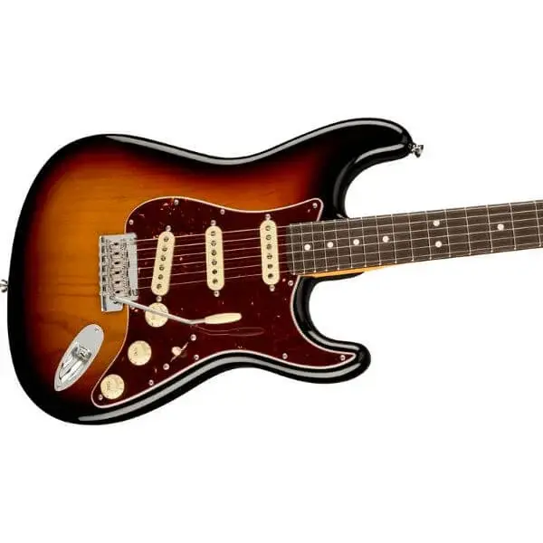 Fender American Professional II Stratocaster, Rosewood Fingerboard, 3-Color Sunburst Fender American Professional II available from anywhere. The American Professional II Stratocaster® draws from more than sixty years of innovation, inspiration and evolution to meet the demands of today’s working player. Our popular Deep “C” neck now sports smooth rolled fingerboard edges, a “Super-Natural” satin finish and a newly sculpted neck heel for a supremely comfortable feel and easy access to the upper register. New V-Mod II Stratocaster single-coil pickups are more articulate than ever while retaining bell-like chime and warmth. An upgraded 2-point tremolo with a cold-rolled steel block increases sustain, clarity and high-end sparkle. The American Pro II Stratocaster delivers instant familiarity and sonic versatility you’ll feel and hear right away, with broad ranging improvements that add up to nothing less than a new standard for professional instruments.