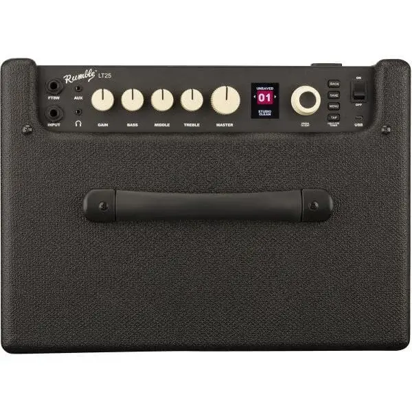 The Fender Rumble LT 25 is a compact bass combo amplifier delivering powerful, clear sound with easy controls.