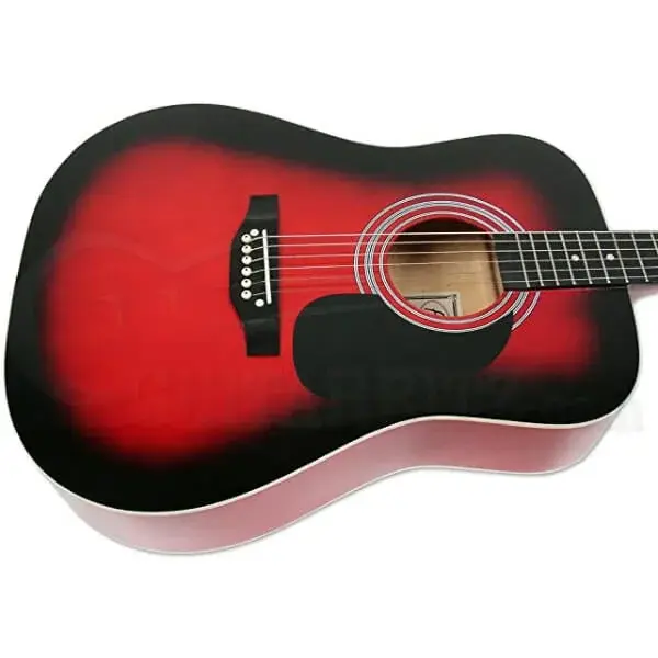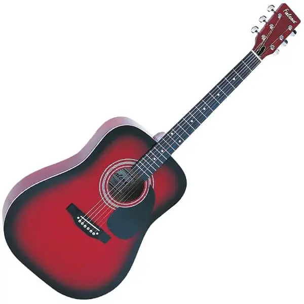 The Falcon FG100R by JHS is a full-size dreadnought acoustic guitar designed for beginners and casual players seeking great tone and playability at an affordable price. With its bold Redburst gloss finish, comfortable neck profile, and strong projection, it’s ideal for home practice, lessons, and outdoor performances. Built with laminated Linden wood for the top, back, and sides, and a maple neck, the FG100R delivers a warm, balanced sound with reliable tuning stability. Its classic dreadnought body shape ensures rich volume and resonance, while the enclosed chrome machine heads provide smooth tuning action. Specifications: - Body Style: Dreadnought - Top: Linden laminate - Back & Sides: Linden laminate - Neck: Maple - Fingerboard: Rosewood - Bridge: Rosewood - Frets: 20 - Finish: Redburst gloss - Binding: White front binding - Scratchplate: Black - Machine Heads: Enclosed chrome - Weight: Approx. 5 kg Recommended For: - Beginner and student guitarists - Casual home use and travel - Festival-goers and acoustic jam sessions