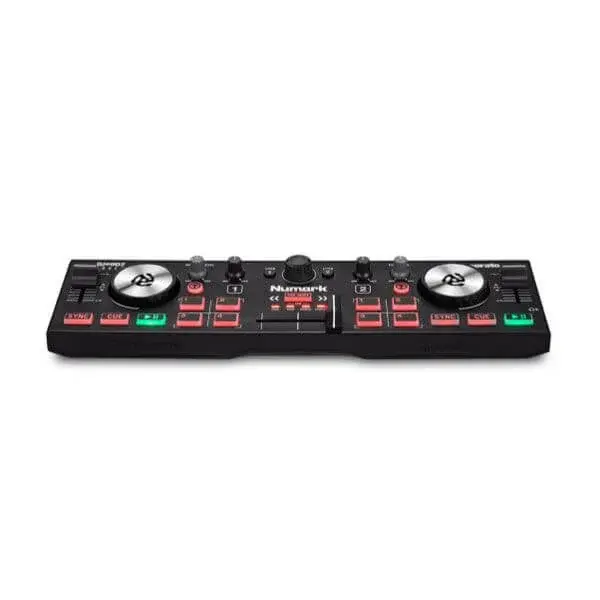 Compact, lightweight DJ controller with touch-sensitive jog wheels, perfect for beginners and mobile DJs.