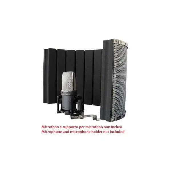 Lightweight recording/home studio acoustic diffuser screen. The screen improves the sound of the acoustic space around the microphone. The screen has a metal insert with universal 5/8″ thread to be attached to a straight microphone stand.