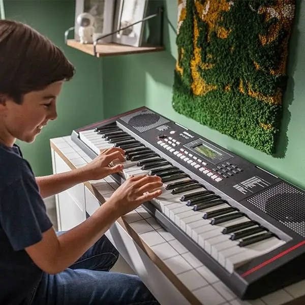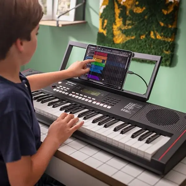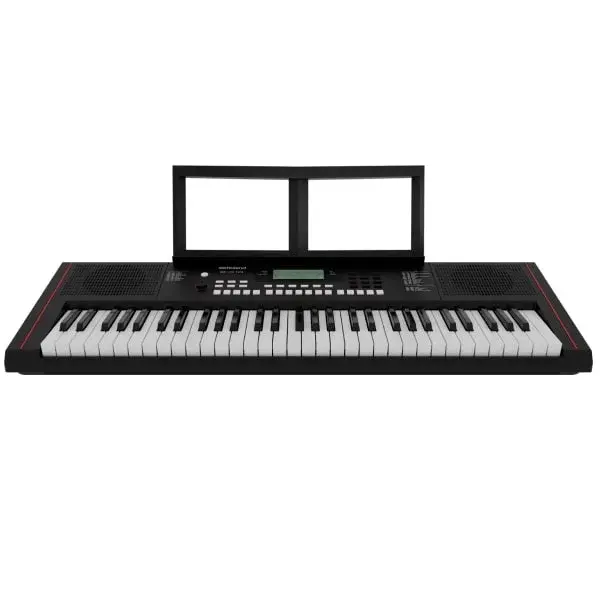 Beginner-friendly keyboard with multiple voices and rhythms.
