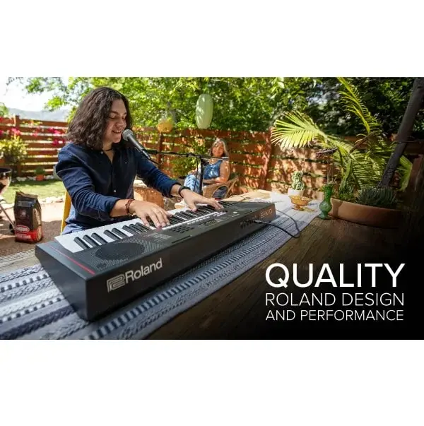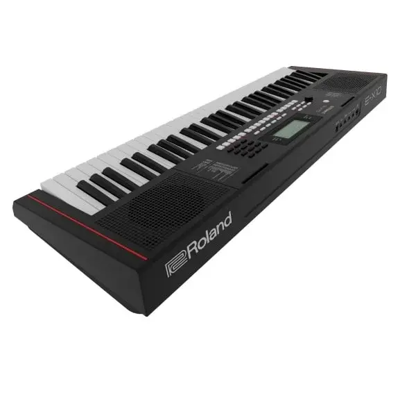The Roland E-X10 Arranger Keyboard is designed to inspire beginners and casual players with professional-grade sound and easy operation. Featuring 61 touch-sensitive keys, this lightweight keyboard offers over 600 high-quality tones, including pianos, strings, guitars, and ethnic instruments. With auto accompaniment, you can play full backing arrangements with just one hand.Enjoy 140+ rhythms covering various genres like pop, rock, jazz, and world music. The E-X10 also includes lesson modes to support learning and progression. Dual and split modes let you layer or divide the keyboard for more expressive play.Other features include a clear LCD screen, headphone output for quiet practice, built-in speakers, and USB MIDI for music production or learning apps.Key Features:61 full-size touch-sensitive keys600+ instrument sounds140+ built-in accompaniment rhythmsDual, split, and lesson modesBuilt-in stereo speakersHeadphone jack and USB MIDI connectivityLightweight and portable (only 3.9 kg)