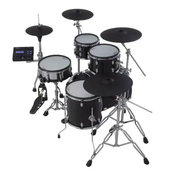 Five-piece V-Drums Acoustic Design kit with full-size wood shells and double-braced chrome stands