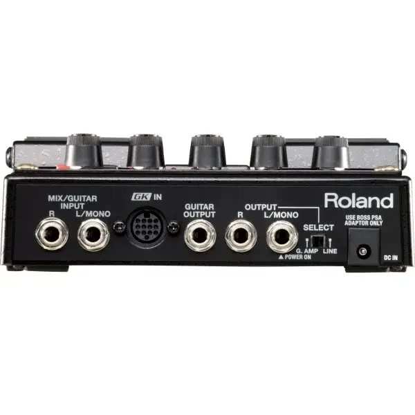 The GR-D also allows players to tweak and store custom sounds using its simple, intuitive controls and has four memory locations for sound storage. It includes a Solo function for quick volume boosts, ideal for lead playing. For integration, it provides a variety of connection options, including a dual MIX/GUITAR input and 13-pin GK output, making it compatible with other V-Guitar devices, amps, and effect chains.