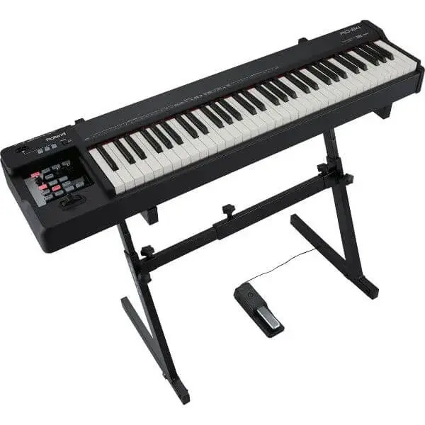 GRAND PIANO SOUND AND TOUCH IN A COMPACT INSTRUMENTPreviously, the only avenue to an authentic piano sound and touch was a large, heavy, and hard-to-carry keyboard. Now, with the RD-64 Digital Piano, stage and studio players can enjoy Roland’s acclaimed piano features in a compact, travel-friendly instrument. SuperNATURAL Piano technology powers ultra-expressive acoustic piano tones, while the 64-note Ivory Feel-G keyboard provides a true weighted-action playing feel. Also onboard is a selection of SuperNATURAL-based vintage EPs, plus essential clav and organ tones. Controller mode instantly turns the RD-64 into a flexible MIDI master keyboard, with a special one-touch setup that unlocks the SuperNATURAL sound potential in a connected INTEGRA-7 sound module or JUPITER-80/-50 synth. Streamlined and mobile, the RD-64 delivers piano-action performance and impressive versatility for live playing, on-the-go composing, home studios, teaching labs, and beyond. Grand piano sound and weighted keyboard action in a compact, mobile instrument SuperNATURAL Piano sound engine delivers authentic, expressive acoustic piano sounds E. Piano based on SuperNATURAL technology provides vintage electric pianos modeled with extraordinary accuracy 12 versatile tones onboard, including clav and organ sounds 64-note Ivory Feel-G Keyboard with Escapement for a pro-quality piano touch Streamlined design that’s light and easy to carry Two-band EQ and reverb, plus two multi-effects (EFX 1, EFX 2) for each tone category Controller mode* provides MIDI master keyboard functionality, including a dedicated, one-touch setup for controlling SuperNATURAL tones in the INTEGRA-7 sound module and JUPITER-80 / JUPITER-50 synthesizers*When the RD-64 is used in Controller mode, the onboard tones are not available. Pitch bend/mod lever and D-BEAM iPad compatibility via Apple’s iPad Camera Connection Kit Streamlined and Travel-ReadyWith the RD-64, gigging players now have access to a compact, weighted-action stage piano that’s as easy to transport as a synthesizer. The streamlined, lightweight design fits easily in small vehicles and takes up less space on crowded stages, plus it makes fly dates less costly and more convenient for touring musicians. It also works great as a high-quality, space-saving keyboard for home studios, teaching labs, and mobile composing. The optional CB-61L Carrying Bag is a perfect match for the RD-64, providing durable protection when you’re on the move.SuperNATURAL Piano and Other Essential SoundsThe RD-64 features Roland’s acclaimed SuperNATURAL Piano sound engine for top-level acoustic piano tones, plus a selection of expressive SuperNATURAL-based electric pianos. The rich, ultra-responsive sounds have a wide dynamic range with seamless variations in tone, delivering pro results for stage playing and studio recording. Also onboard are a number of clav and organ sounds, giving performing keyboardists the essential sounds they need for playing a wide range of music styles.Ivory Feel-G KeyboardThe 64-note Ivory Feel-G keyboard in the RD-64 incorporates Roland’s most advanced sensor technology, escapement mechanism, and Ivory Feel features. This gives you the superior touch, sensitivity, and appearance of the keyboards found in our flagship 88-note pianos, right down to the unique key material that replicates the authentic texture and moisture-absorbing properties of real ivory and ebony. Combined with the SuperNATURAL Piano sound engine, the Ivory Feel-G offers expressivity and performance that rivals high-end instruments.Effects and MoreOnboard effects include a high-quality stereo reverb, plus EFX 1 and EFX 2 processors that provide sweetening specifically tailored to each of the RD-64’s tone categories. Options include enhancer and damper resonance for grand piano sounds, tremolo and phaser for EPs, and many more, with quick on/off access via easy-to-reach buttons. There’s even a dedicated rotary effect for the organ, featuring on/off and speed controls for authentic organ performance. A two-band EQ is provided for overall sound shaping, with easy adjustment on the fly via two convenient knobs. Stereo RCA inputs allow you to connect a music player for live backing tracks and practicing.Advanced Controller FeaturesIn a flash, Controller mode* turns the RD-64 into a powerful master keyboard outfitted with assignable knobs, buttons, pitch bend/mod lever, and the famous D-BEAM, perfect for controlling synths and other devices on stage and in the studio. Additionally, the one-touch SuperNATURAL button automatically assigns the RD-64’s controllers to fully utilize the massive expressive potential of the SuperNATURAL tones in Roland’s INTEGRA-7 sound module and JUPITER-80 / JUPITER-50 synthesizers.*When the RD-64 is used in Controller mode, the onboard tones are not available.Ideal for iPad Music ProductionWith an ever-increasing number of music apps available, the iPad is becoming more and more popular for basic production and on-the-go composing. By plugging in via Apple’s iPad Camera Connection Kit, the RD-64 gives you a mobile, weighted-action keyboard to use with the popular tablet computer.https://www.youtube.com/watch?v=ybs0ukrluB0