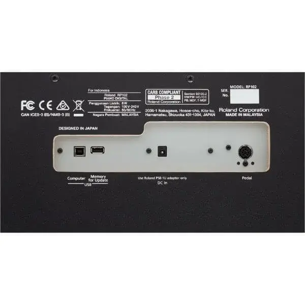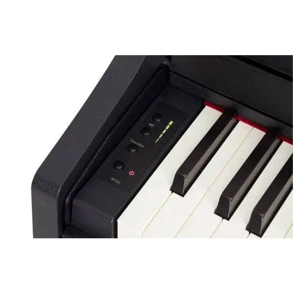 Roland Digital Piano RP102 Authentic Piano Performance with Modern Connectivity When choosing a piano, it’s essential to find an instrument that suits your lifestyle, budget, and space. The Roland RP102 delivers on all fronts, combining authentic piano performance and onboard practice features in a compact and affordable design. It’s filled with technologies derived from our award-winning premium pianos-including a luxurious and supremely playable weighted-action keyboard-providing inspiring sound and touch that will continually support your music as your skills evolve. And with its streamlined cabinet and three integrated pedals, the RP102 offers a traditional upright look that fits nicely anywhere space is at a premium. Thanks to its advanced capabilities, the RP102 blends in seamlessly with your modern lifestyle. It never needs tuning or regular maintenance, and includes onboard Bluetooth® technology for connecting with a smartphone or tablet for instant enjoyment and enhanced learning. By wirelessly pairing the piano with Roland’s free Piano Partner 2 app, you can view digital sheet music, interact with backing rhythms, and access various features not available from the panel. The RP102 is an exceptional piano value, at the ready to bring musical enjoyment for years to come. Authentic Piano Performance with Modern Connectivity When choosing a piano, it’s essential to find an instrument that suits your lifestyle, budget, and space. The Roland RP102 delivers on all fronts, combining authentic piano performance and onboard practice features in a compact and affordable design. It’s filled with technologies derived from our award-winning premium pianos-including a luxurious and supremely playable weighted-action keyboard-providing inspiring sound and touch that will continually support your music as your skills evolve. And with its streamlined cabinet and three integrated pedals, the RP102 offers a traditional upright look that fits nicely anywhere space is at a premium. Thanks to its advanced capabilities, the RP102 blends in seamlessly with your modern lifestyle. It never needs tuning or regular maintenance, and includes onboard Bluetooth ® technology for connecting with a smartphone or tablet for instant enjoyment and enhanced learning. By wirelessly pairing the piano with Roland’s free Piano Partner 2 app, you can view digital sheet music, interact with backing rhythms, and access various features not available from the panel. The RP102 is an exceptional piano value, at the ready to bring musical enjoyment for years to come. Have Fun and Learn Faster with Piano Partner 2 Roland’s free Piano Partner 2 app for iOS and Android mobile devices is the perfect companion for the RP102. Via a wireless Bluetooth connection, it shows digital notation for the piano’s internal songs on your device’s display, and pages even turn automatically as a song plays. You can practice each hand individually by muting the left-or right-hand part, and freely adjust the tempo as needed. The app also provides access to backing rhythms and flash card games that help you build skills with intelligent accompaniment and engaging music exercises. Ready for Practice and Enjoyment Every Time You Sit Down to Play The RP102 is equipped to inspire music making the instant you get it set up at home. There are over 200 ready-to-play songs at hand, including traditional music, classical masterpieces by Mozart and Beethoven, and famous piano etudes from Hanon and Czerny. There’s also a convenient onboard metronome with variable time signatures, providing an essential tool to develop your sense of timing. If inspiration strikes at midnight, you can plug in headphones and lose yourself in rich, beautiful sound without disturbing family members and neighbors. And when you want to play side by side with a teacher or friend, you can activate Twin Piano mode and split the keyboard into two 44-note pianos, each with their own middle C. Smooth and Easy Operation With its straightforward interface, the RP102 lets you enjoy great piano sound with zero hassle-just press the power button, adjust the volume, and start playing. And if you want to dive into the piano’s deeper features, simply call up Piano Partner 2 on your favorite mobile device. From the app, you can choose from a variety of piano and non-piano sounds, and even layer any two sounds together. In addition, you can browse the piano’s onboard song library, select songs, and adjust the tempo numerically. Authentic Sound and Touch Supports Your Playing as You Get More Serious Offering piano sound and touch derived from Roland’s premium digital pianos, the RP102 will continue to inspire as your playing grows and evolves. Our SuperNATURAL technology delivers the rich, expressive tone you’d expect from an acoustic grand piano, while dynamic built-in speakers fill the room with immersive sound. The PHA-4 Standard keyboard inherits the progressive hammer action and Ivory Feel texture of keyboards found in our high-end pianos, and includes advanced sensing technology to take full advantage of SuperNATURAL Piano’s enormous tonal range. This highly responsive keyboard follows every nuance of your developing touch, encouraging deeper levels of expression as your technique improves. The piano’s three pedals are made of metal for an authentic feel, and also support half-pedal control. This technique is required to play more advanced piano pieces, and is not possible on typical entry-level instruments that employ less sophisticated pedal switches. Avoids Costly Maintenance and Saves Space in Your Living Room Acoustic pianos are heavy, costly to maintain, and take up a lot of space. With its modern digital approach, the RP102 is the solution to all these problems and more. It weighs just 84.3 lbs./37.8 kg and is easily moved by two adults, while the space-saving cabinet is about the same width as a 60-inch TV on a stand. What’s more, the advanced digital
