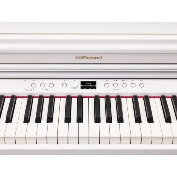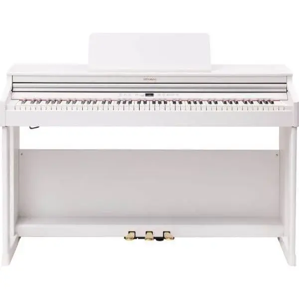 The Roland RP701 in elegant white offers authentic grand piano tone and feel, Bluetooth connectivity, and modern features – ideal for home practice and performance.