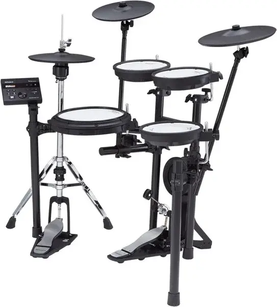 The Next Step in the TD-07 Series, with Larger Snare and Toms plus a Second Crash Cymbal For drumming without limits, the TD-07KX offers larger pads and the highest cymbal count in Roland’s TD-07 V-Drums series-giving great value and extended creative capabilities. The 12-inch PDX-12 snare and 8-inch PDX-8 toms provide the platform to push your drum technique, backed by the unbeatable response of our original ultra-quiet, double-ply mesh heads. Meanwhile, a total of three CY-8 cymbals plus a dedicated kick pad enable new levels of expression. With the foundation of the powerful TD-07 sound module, the TD-07KX goes far beyond traditional drums, offering authentic drum kits across a vast range of styles and genres, plus deep tone editing to customize them. There’s also a Coach function for building skills, Bluetooth® connectivity with smartphones, tablets, and computers for streaming audio to the sound module, and a one-cable USB connection for recording in computer-based music production software. Authentic V-Drums Performance For more than twenty years, Roland V-Drums have earned a reputation as the industry’s favorite digital drum kits, sounding and playing better than anything else. Imitated but never matched, V-Drums offer you an incredibly lifelike recreation of a traditional acoustic kit in an electronic format, along with technology and features not found anywhere else. Now, the TD-07KX continues this legacy, adding larger snare and tom pads and a second crash cymbal over the entry-level TD-07 series kits, expanding your sonic palette and playing options. Sound as Real as It Gets At the heart of any great electronic drum set is a powerful, fast-processing sound module-and the TD-07 is the perfect match for the upgraded hardware of your TD-07KX kit. Take your pick from a library of acoustic drums, electronic drums, and percussion types, all captured in precise detail in top recording studios and brought to life with advanced V-Drums technologies to react just like acoustic instruments when you play them. Start Drumming in Seconds-or Go Deeper Setting up in seconds and packed with ready-to-play preset kits, the TD-07 is always ready for an impromptu session. But when you’re ready to explore, a vast drum library awaits within the module. Test-drive snares and toms, max out kick drums, or set the size of your crashes and rides. Then go further by tuning the drums, adding damping, and changing how the kit sounds when played in a variety of physical spaces. For the final touch, tweak the module’s individual EQs to shape the drums to your musical situation, just like a pro sound engineer would. As Quiet-Or as Loud-as You Like Acoustic drum kits are unavoidably loud, and even lesser electronic kits can be impractical due to the contact noise of sticks on pads. But thanks to Roland’s decades of R&D, the TD-07KX is designed to be much quieter. Hit our mesh heads as hard as you like and enjoy authentic stick rebound with minimal pad noise. Trust in the kick pad’s special damping to cut noise and vibration while retaining a satisfying, natural feel. Even the stand is designed and constructed to reduce vibration and noise transfer to the floor, and there’s a range of optional products available if further noise-banishing is needed. Acoustic Tone That Feels Alive Strike the pads of some digital kits and you’ll hear a series of static drum tones with none of the dynamic response that makes playing an acoustic drum so satisfying. The TD-07KX’s pads and cymbals are a different class, working with the module to provide a rich and reactive array of tonal colors that truly reflect your drumming. With their larger playing surfaces, the TD-07KX’s drum and cymbal pads have advanced precision sensors, capturing every hit, stroke, roll, flam, cymbal choke and ghost note, then relaying them with latency-free accuracy. Even better, this technology never gets in the way of the music-so just sit back, start playing, and let the magic happen. Roland’s Industry-Standard Mesh-Head Pads Roland changed electronic drums forever with the launch of the world’s first mesh drumheads in 1997, and we’ve been sharpening our technology ever since. Our unique double-layer mesh design offers natural stick resistance and rebound that evokes your favorite acoustic kit, along with the ability to adjust the head’s tension using a standard drum key. You’ll only get that hugely satisfying playing feel and sensing speed with a Roland mesh head. And once you’ve experienced it, you won’t want to play anything else. A Stand and Hardware That Works as Hard as You Do When you’re playing a full-throttle beat, it’s essential to have a drum stand that remains stable and pads that hold their position. Using only the strongest materials and best-quality components, the TD-07KX provides rock-solid hardware that’s as dependable as your enthusiasm to play. The custom drum stand gives a firm and steady foundation you can rely on, backed by precision clamps that lock every component in position for the whole set. Play the TD-07KX as hard as the music demands, and trust in a kit that will serve you for years to come. Stream and Jam with Your Favorite Songs Using Bluetooth You’re never alone with the TD-07KX, thanks to Bluetooth technology. For instant jams with your favorite music and bands, simply choose a song on your phone, tablet, or computer, then wirelessly stream audio through the sound module and get drumming. For playing along with online songs and lessons, you can transmit video sound too. And if your device doesn’t have Bluetooth, just connect it with a stereo audio cable. MIDI over Bluetooth is also supported for cable-free recording of MIDI data in music apps. Spice Up Your Drum Sessions with 40 Free Lessons from Melodics Melodics™ is a desktop app that invites you to drum along with step-by-step lessons and tracks, master new beats, sharpen up your rhythm and timing, record your perform