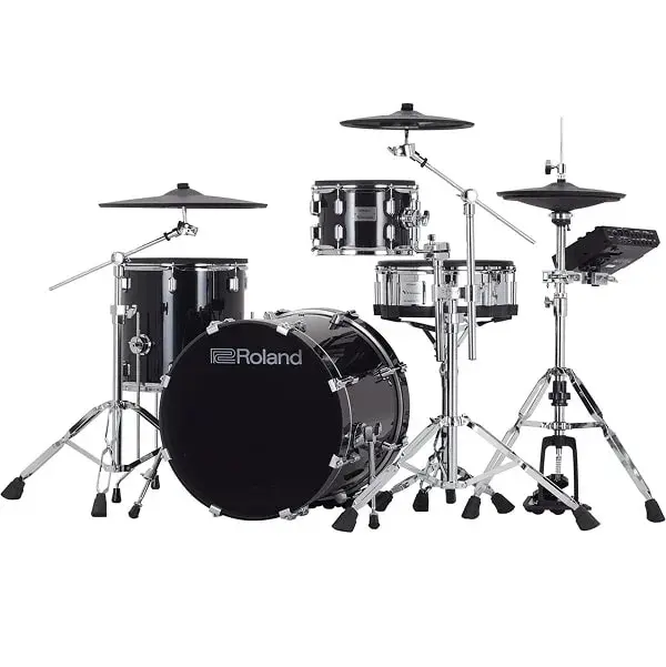 With the impressive looks, familiar layout, and inspiring playability of a high-end acoustic kit, the VAD504 makes any drummer feel instantly at home. There’s a 14-inch stainless steel snare, 10-inch rack tom, 14-inch floor tom, and 20-inch kick constructed with full-depth wood shells, adding to the authenticity and providing genuine acoustic feel under the sticks and beater. A full complement of cymbals includes a 14-inch V-Hi-Hat, 14-inch crash (with thin profile and textured finish), and an 18-inch ride for superior playability and natural appearance on stage.