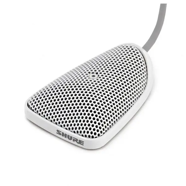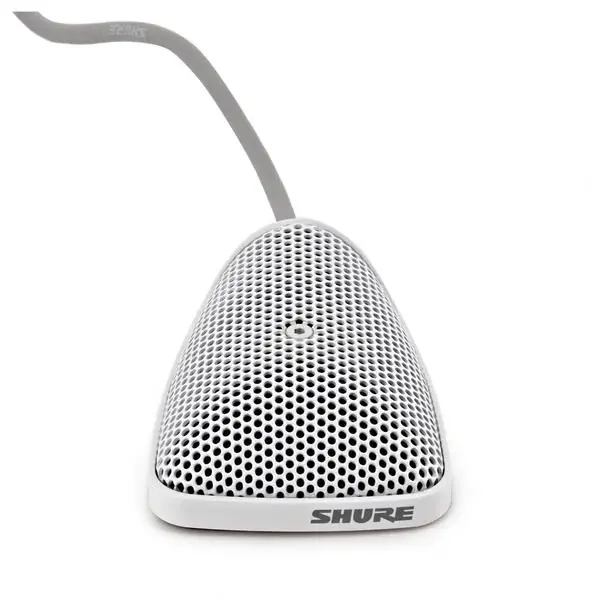 The Shure CVB-W/C is a white boundary microphone with cardioid pickup, delivering clear and focused audio for conference tables, boardrooms, and professional meeting environments.