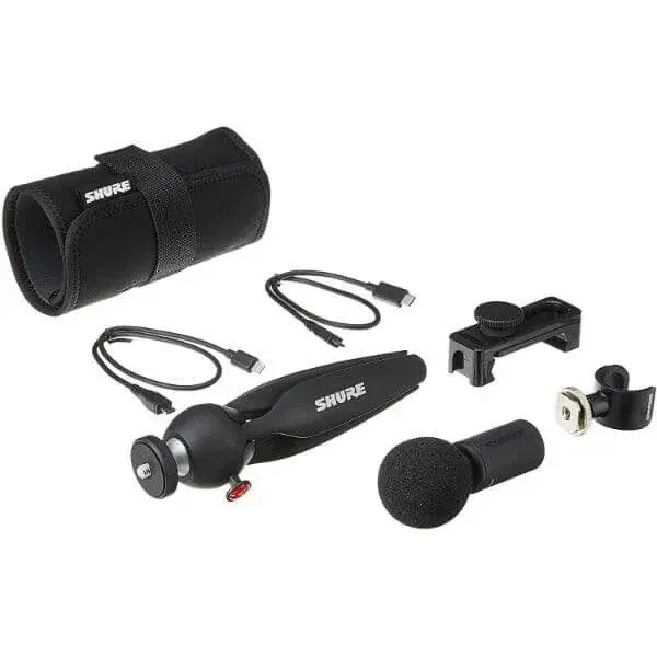 The MV88+ Video Kit is your mobile professional recording rig. Package includes Manfrotto PIXI Tripod, phone clamp & shoe-mount mic clip, USB-C & lightning cables, making it ready for audio and/or video capture right out of the box. The free ShurePlus MOTIV audio & video Apps enable recording control, and the ability to save and share your content in multiple formats.